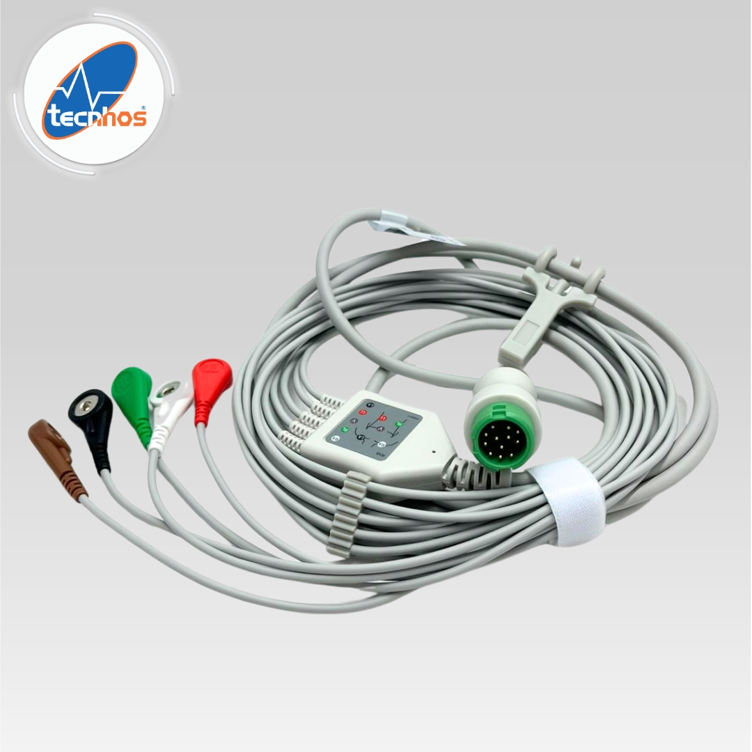 CABLE ECG DE 5 DERIVACIONES SNAP COMPATIBLE CON MINDRAY, BENEVIEW T5, T8, 12 PINES CONECTOR 12 PINES